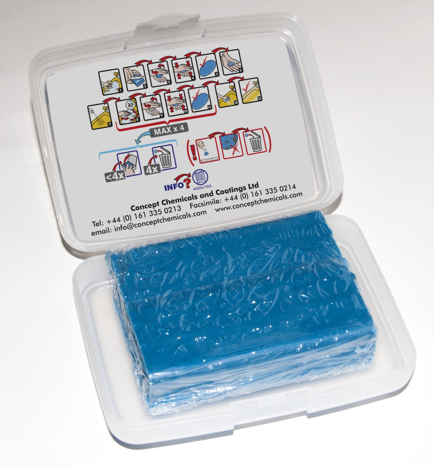 Beskrivning: Det fastnar normalt mycket smuts på och i lacken som inte alltid syns,. Detta kit tar enkelt bort dessa påslag, såsom kåda, flygrost, lackdamm och annan industriell smuts. Med hjälp av leran samlas föroreningar upp snabbt och skonsamt, lacken känns då slät och fin igen. Rengöringsprocessen är nödvändig inför tex polering.